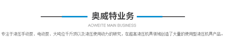 德州奧威特液壓機(jī)械有限公司有多年的超高壓元件及設(shè)備制造經(jīng)驗,依托德州精湛的制造工藝和不斷創(chuàng)新的技術(shù),專注于液壓手動泵、電動泵、大噸位千斤頂及拆裝科技以及液壓使用動力的研究,在超高液壓機(jī)具領(lǐng)域不斷研發(fā),創(chuàng)造了大量的使用型液壓機(jī)具產(chǎn)品。
